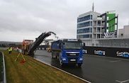 Die Maschinen für die Abfräsung des alten Asphaltes werden heute auf der Start- und Zielgeraden mit ihrer Arbeit beginnen. Insgesamt werden knapp 50.000 qm in zwei Schichten mit rund 4.000 Kubikmetern neuem Asphalt bedeckt.